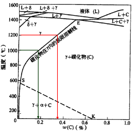 304(18Cr-8Ni),1200℃碳的溶解度0.34%,1000℃碳的溶解度0.18%,600℃碳的溶解度0.03% 。